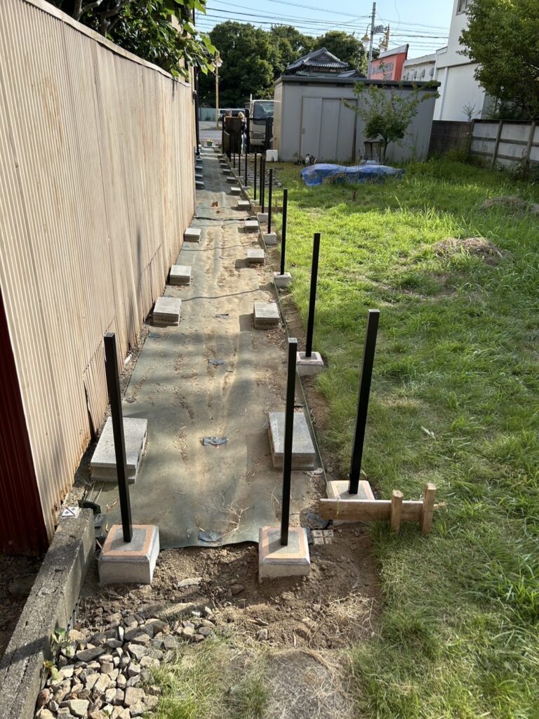 新しいブロックの上にはアルミ製のフェンスを設置しました。ブロックだけでは圧迫感が出がちですが、フェンスを組み合わせることで風通しが良く、外観も軽やかに見えます。また、近年はデザイン性の高いフェンスも多く、建物や庭の雰囲気に合わせて選ぶことが可能です。防犯性も向上し、安心して暮らせる空間が生まれます。