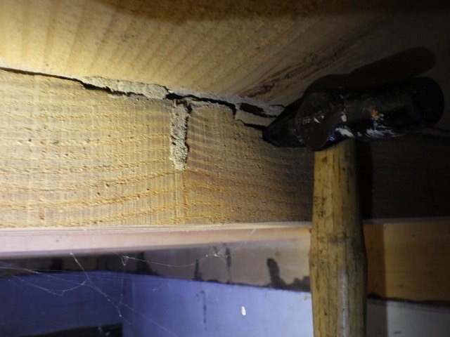 羽アリが室内に侵入し、調査の結果、床下の大引や断熱材の継ぎ目に蟻道が多数確認されたという内容です。