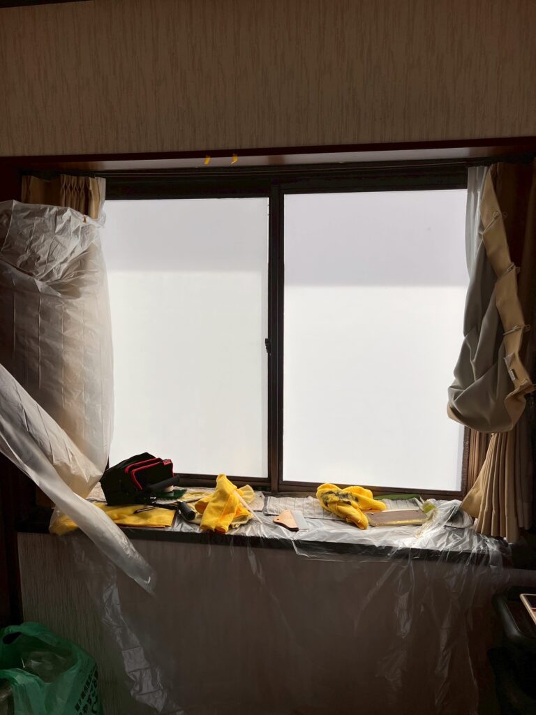 ガラスフィルム目隠し施工|清掃に7割の時間