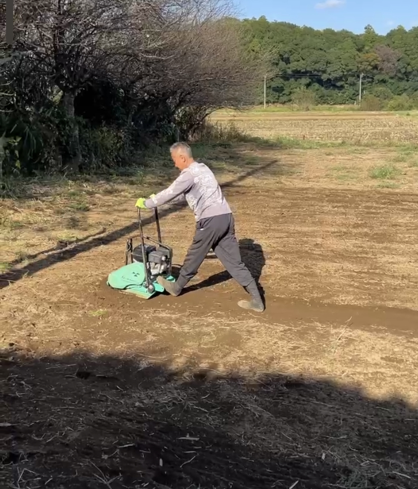 根が残っていると、そこから突き破ってきます。整地は“アイロンをかけるように”丁寧に。状況によっては転圧機を使います