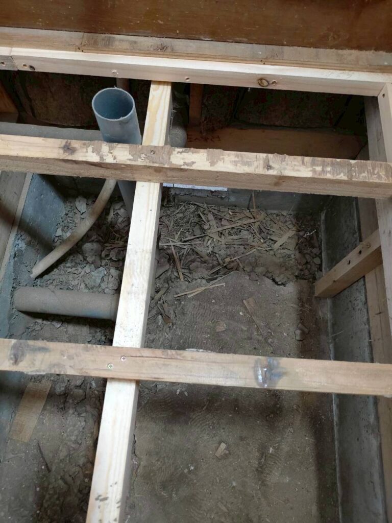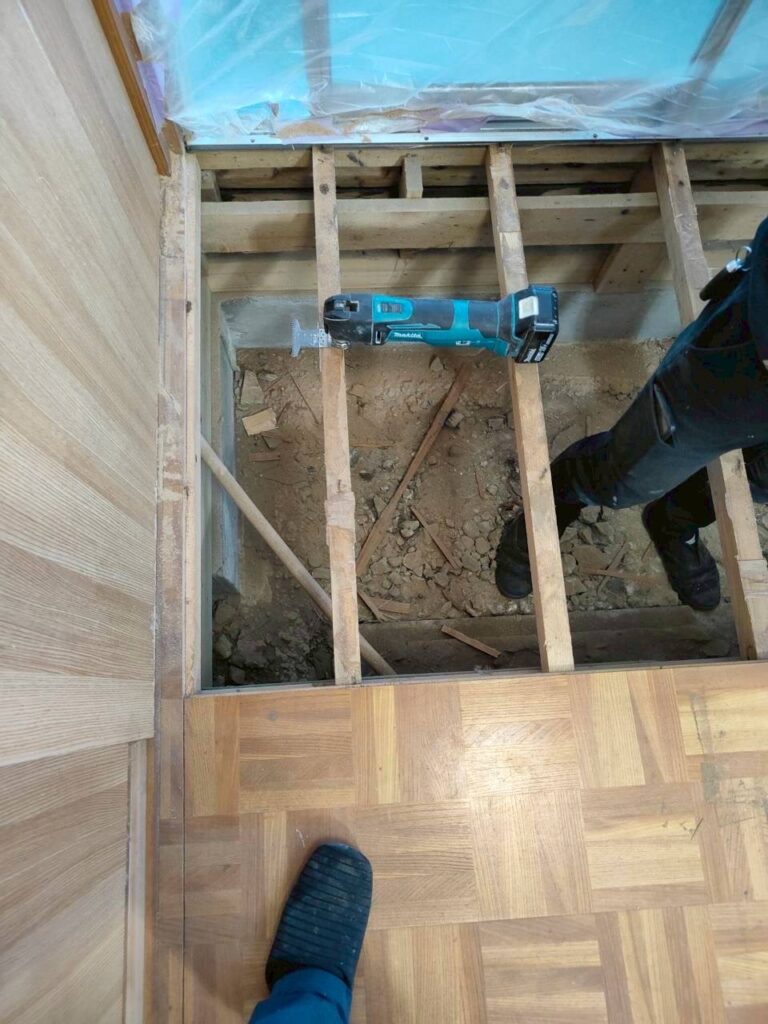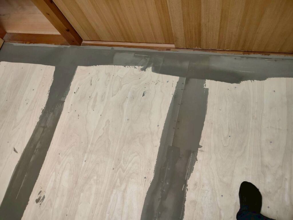 部分的な補修では持たないため、床を落として下地からやり直し。