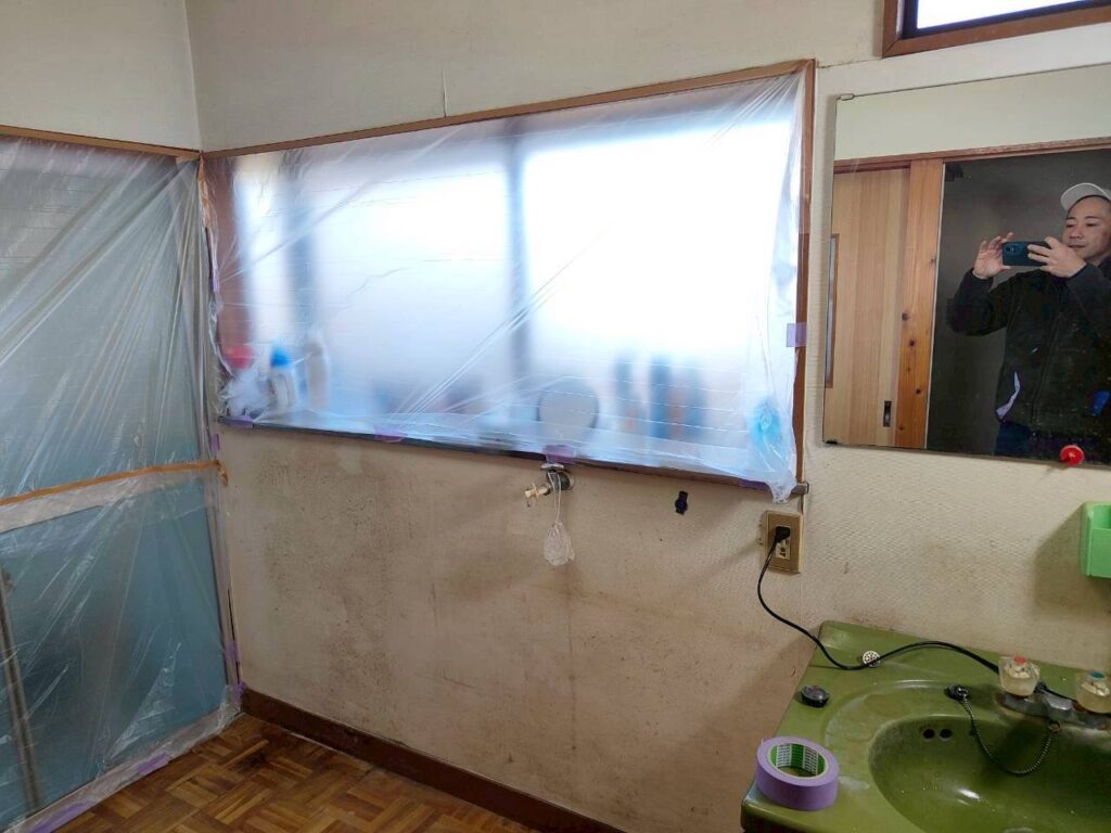 メインは洗面所の床落ち工事からCF(クッションフロア)仕上げ。