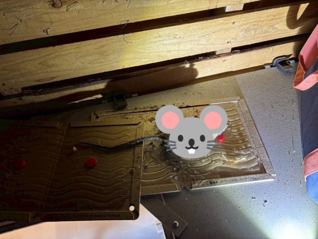 短期決戦で終わる案件ではないと判断し、毒餌と粘着トラップを併用した、最長4ヶ月を想定した駆除作業を開始しています。
