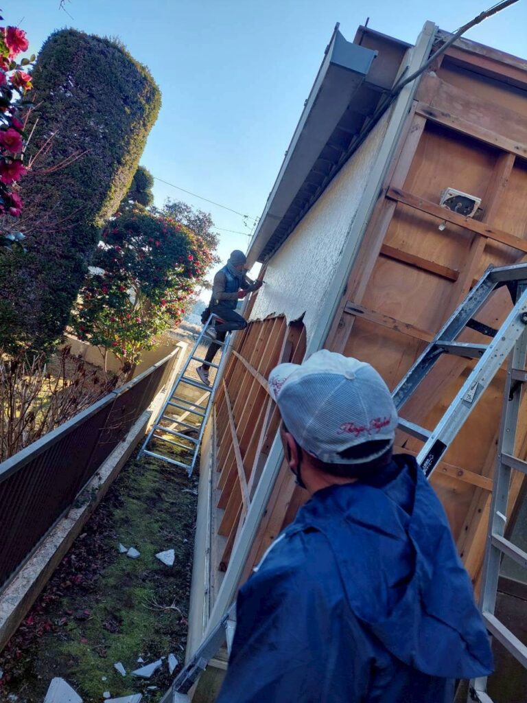 外壁改修では、従来の木質系外壁を撤去し、金属サイディングへ変更しました。