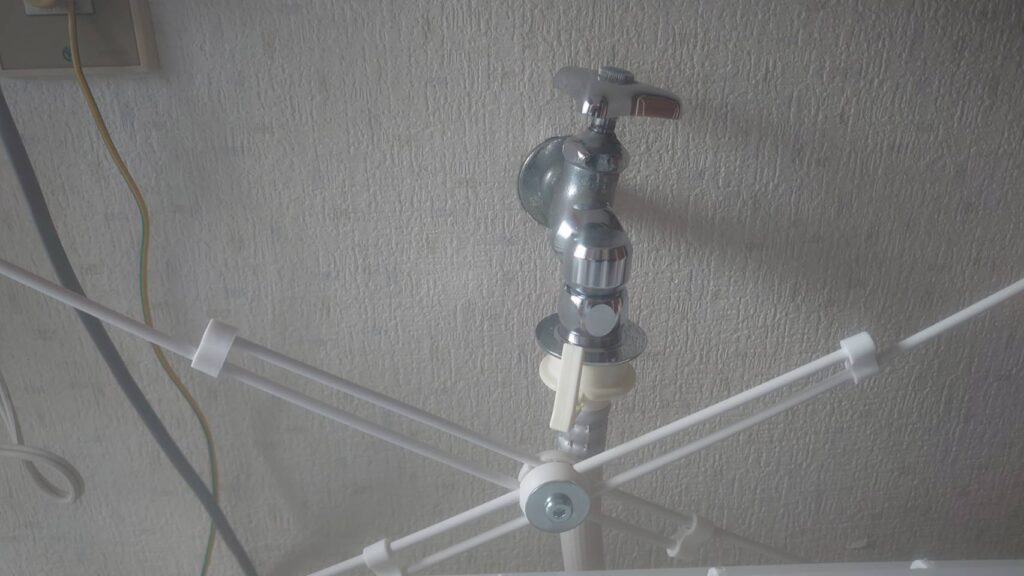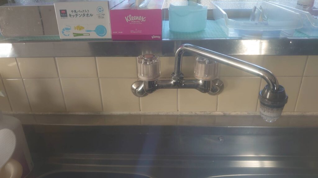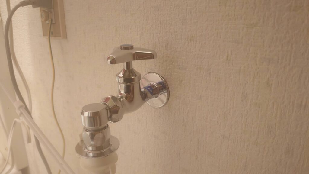 古い蛇口はホースが外れた瞬間に全開放水します。