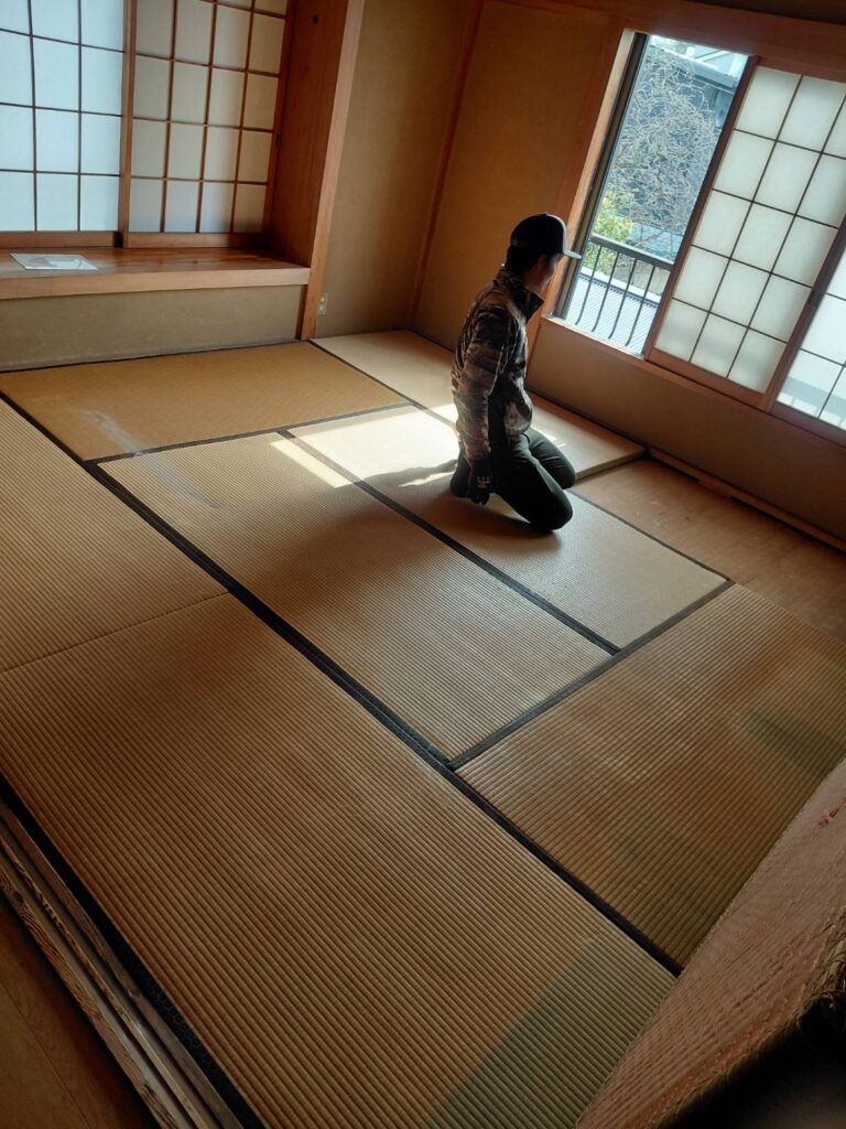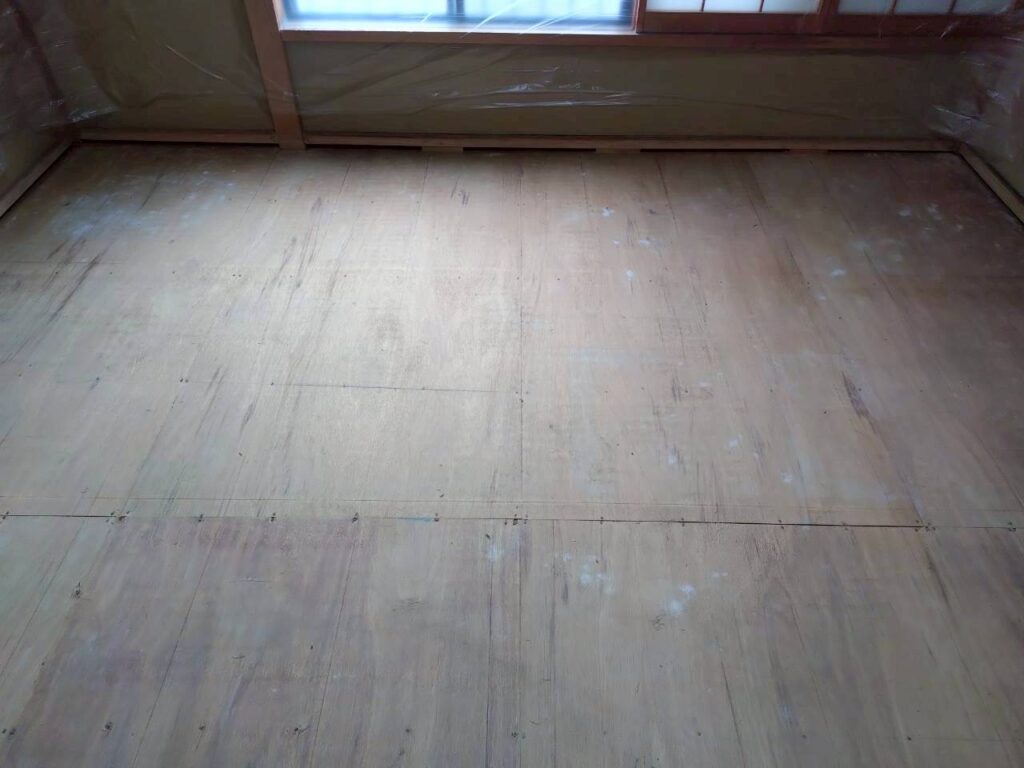 今回の工事では、既存の畳をすべて撤去し、下地から調整を行いました。